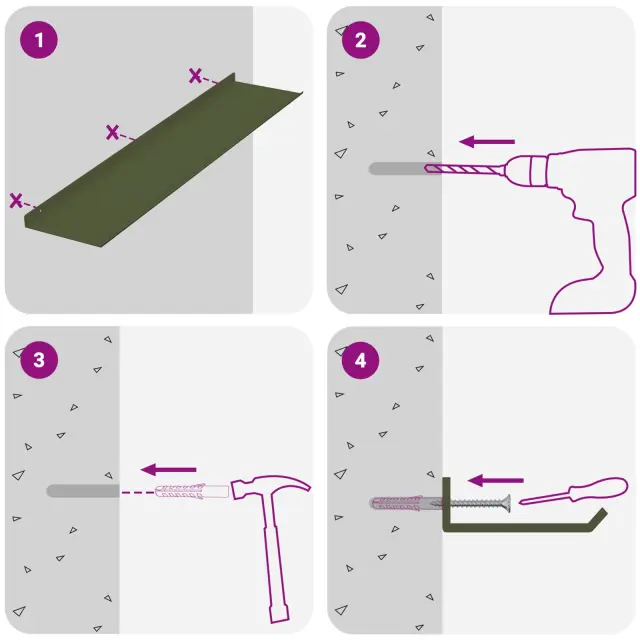 • Enostavna namestitev Polica je zasnovana za hitro in enostavno montažo na steno z osnovnimi orodji. Vijaki niso vključeni, takže jih izberite glede na svojo steno.