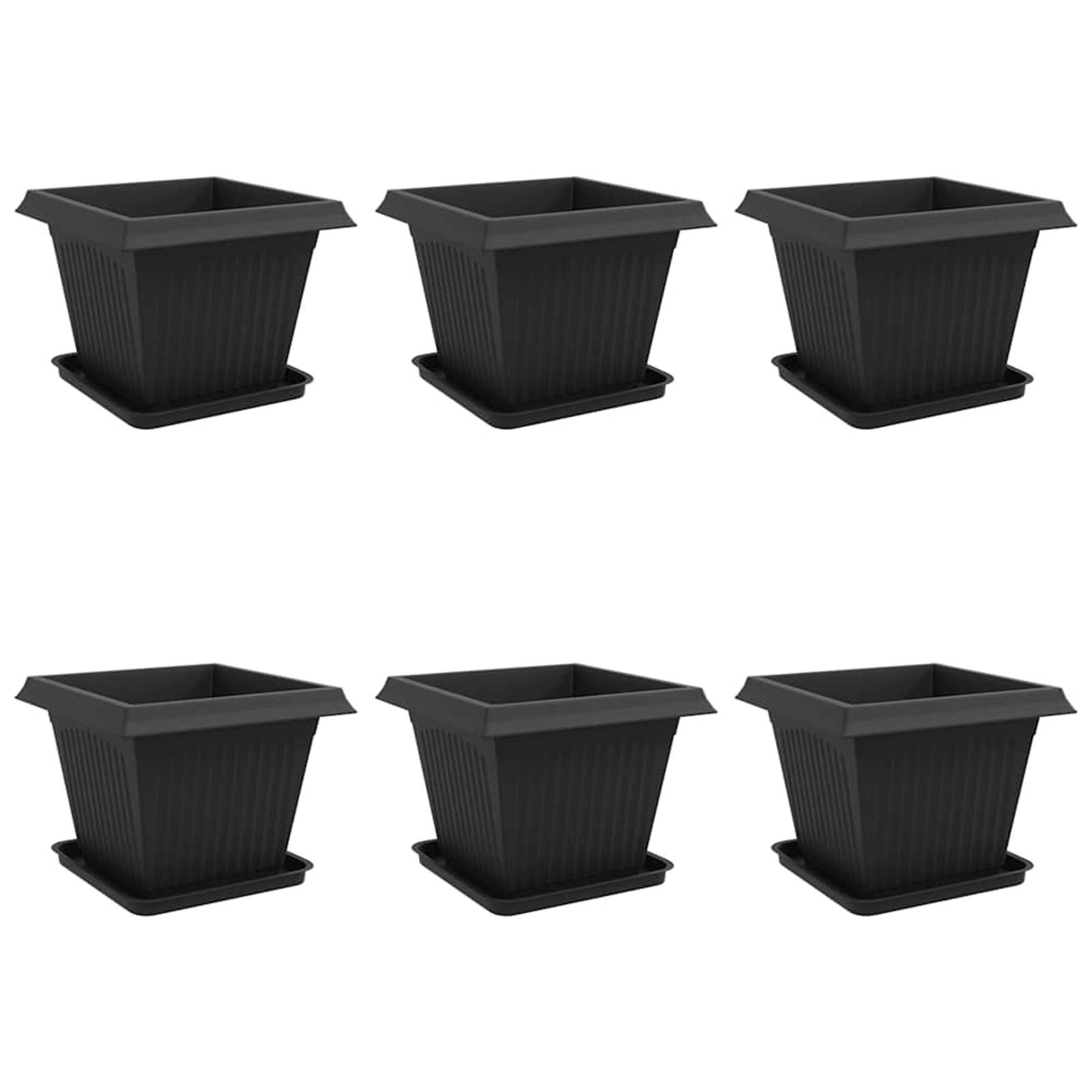 vidaXL Lončki za rastline 6 pcs Črna 38 x 38 x 30 cm Plastika