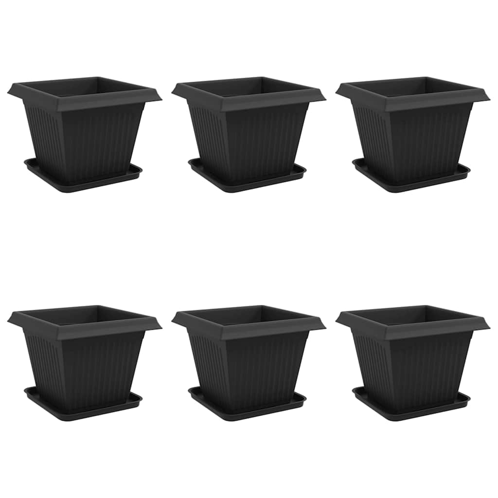 vidaXL Lončki za rastline 6 pcs Črna 38 x 38 x 30 cm Plastika