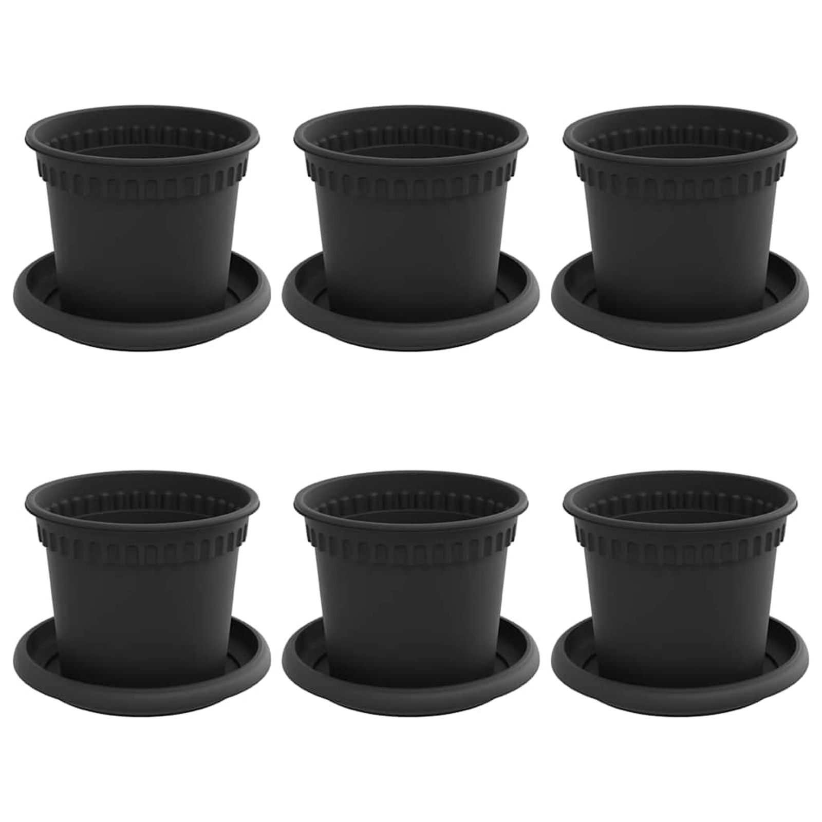 vidaXL Lončki za rastline 6 pcs Črna Ø 12,5 x 10 cm Plastika