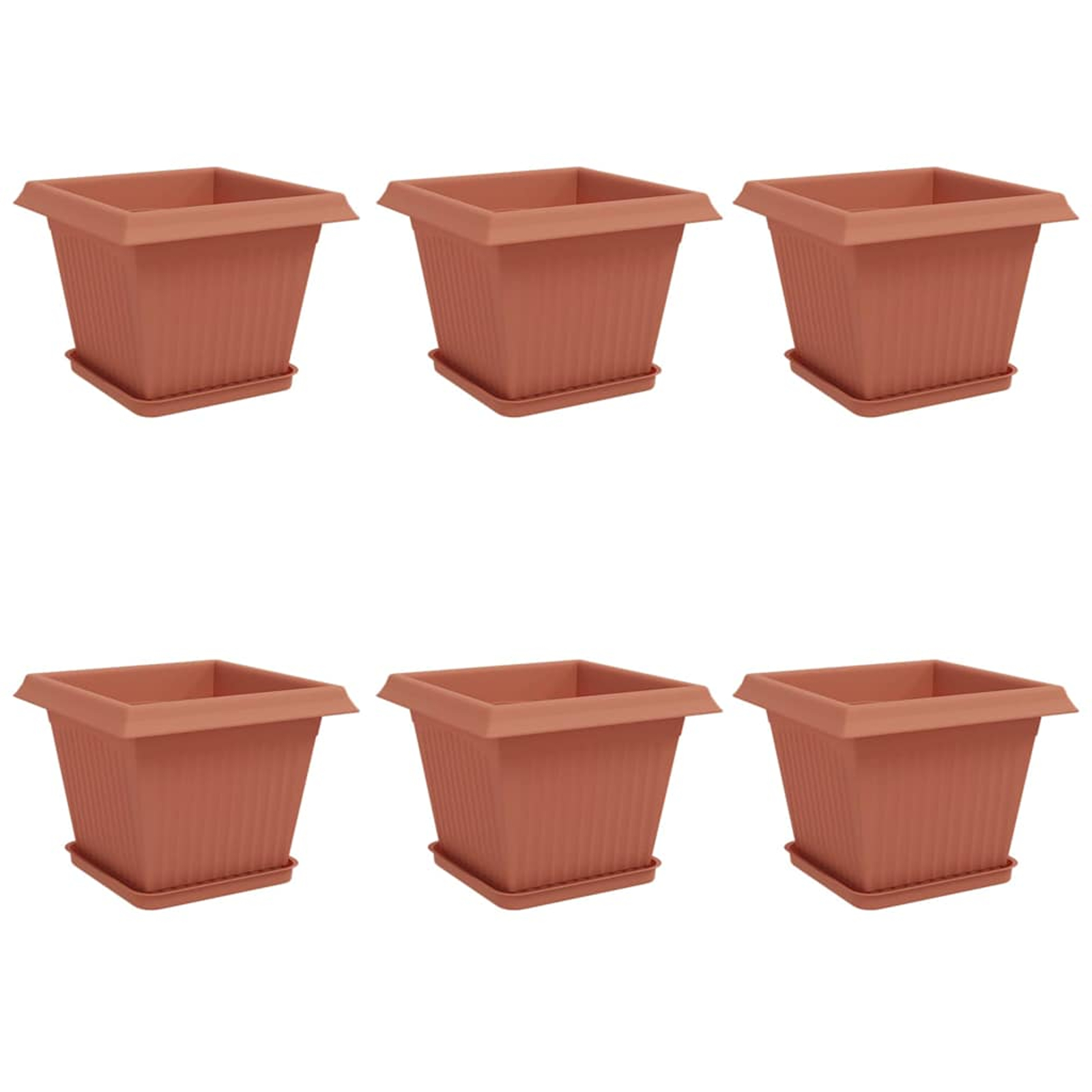 vidaXL Lončki za rastline 6 pcs Kamnito rdeča 38 x 38 x 30 cm Plastika