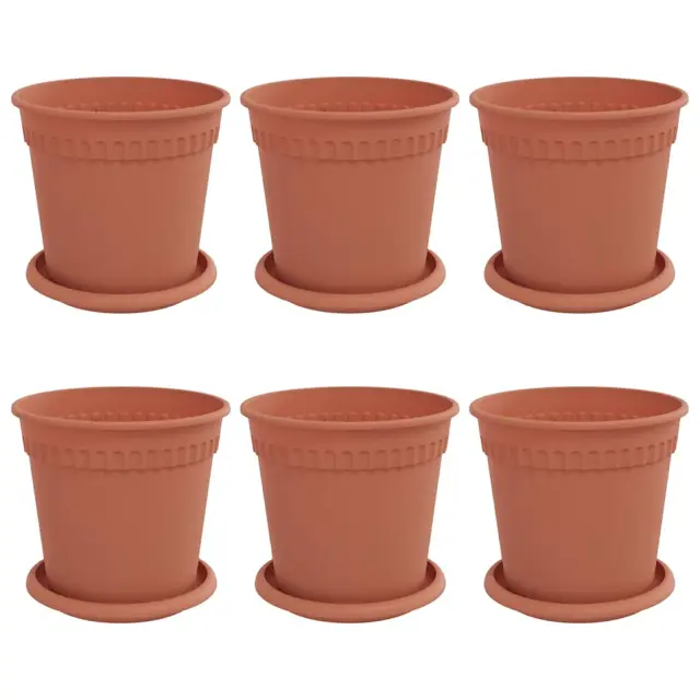 vidaXL Lončki za rastline 6 pcs Kamnito rdeča Ø 17 x 14 cm Plastika