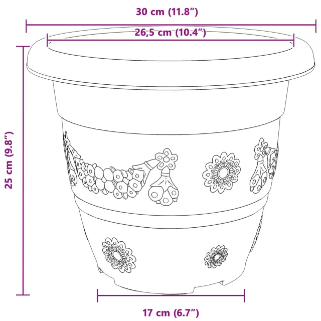• Prilagodljive možnosti postavitve: Ne glede na to, ali krasijo balkon ali se lepo prilegajo med zelenjavne gredice, ti lonci so super prilagodljivi. Njihov design je primeren za razne vrste rastlin, od sukulentov do cvetlic, kar omogoča prilagodljivost, kadar se tvoja zbirka rastlin spremeni.