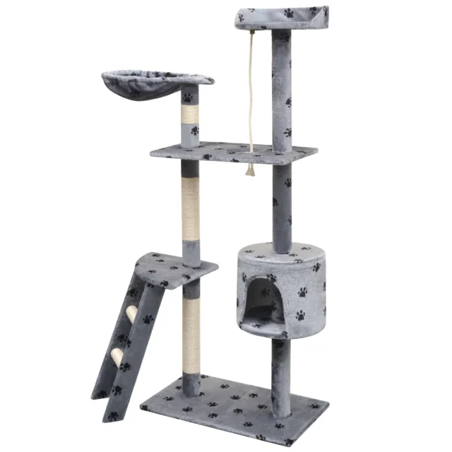 vidaXL Mačje drevo s praskalniki iz sisala 150 cm s tačkami sive barve