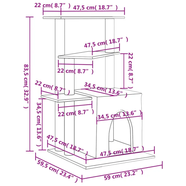 • Mačji stolp vse-v-enem: Večnadstropno mačje pohištvo je zasnovano s hišico in platformami, kar zagotavlja popolno mesto za plezanje, posedanje, praskanje, skrivanje in tudi sprostitev.