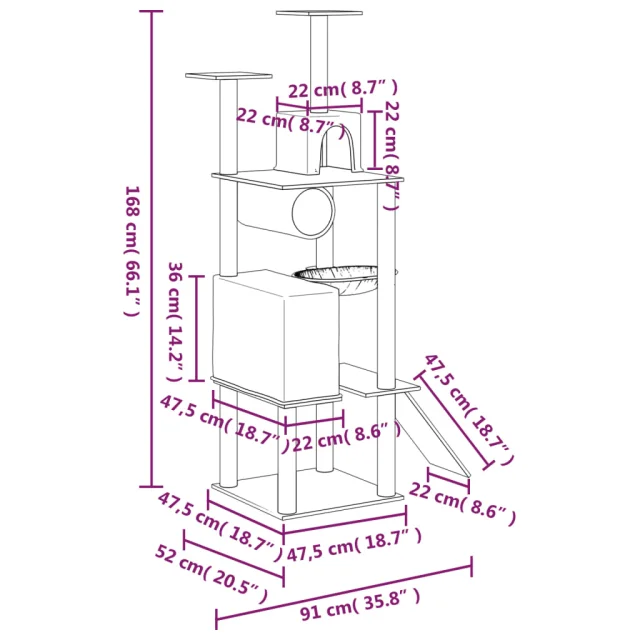 vidaXL Mačje drevo s praskalniki iz sisala temno sivo 168 cm