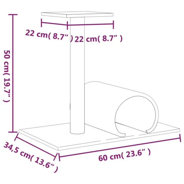 Naj se vaše ljubke mačke neskončno zabavajo s tem klasičnim mačjim praskalnikom! Praktična zasnova: Praskalnik za mačke je zasnovan z 1 tunelom in 1 platformo, ki zagotavljata popolno mesto za plezanje, posedanje, praskanje, skrivanje in sprostitev.Mehak pliš: Izjemno debel in mehak pliš je zračen, odporen na praske, izjemno udoben in topel.Naravni steber iz sisala: Vrhunski in trpežni stebriček iz naravnega sisala na praskalniku je kot nalašč za vaše ljubljene mačke, da zadovoljijo svoj instinkt po praskanju in ne praskajo vašega pohištva. Opomba:Vsakemu izdelku je priložen priročnik za enostavno sestavljanje.Barva: KremMaterial: Inženirski les, pliš, sisalDimenzije: 60 x 34,5 x 50 cm (D x Š x V) 171696