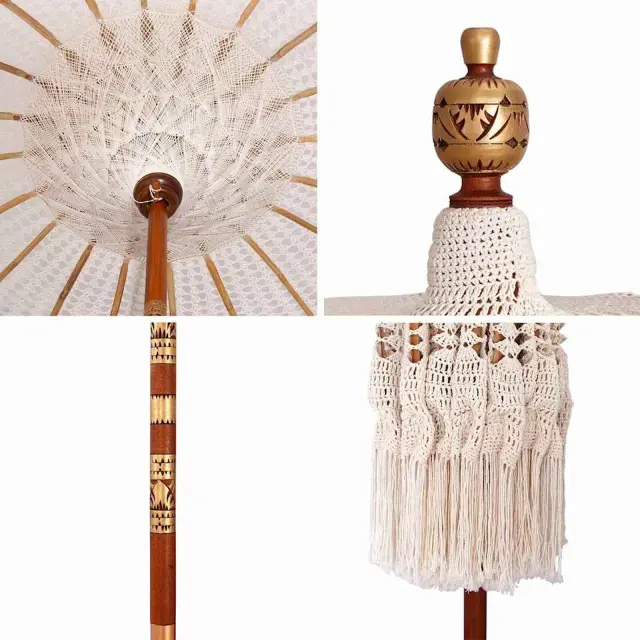 Makramejski senčnik prinaša privlačen boemski pridih, ki ogreje in polepša vsak vrt ali teraso. Njegova eklektična zasnova, okrašena z lepimi vzorci, je vizualno privlačna in pritegne pozornost ter vas navdihne. Ta senčnik ustvari sproščen in prostoren zunanji kotiček, kar ga dela idealnega za tiste, ki uživajo v igranju z barvami in teksturami. Ne glede na to, ali pripravljate zabavo ali uživate v mirnem popoldnevu, njegov mehak, podroben videz dodaja še eno plast očarljivosti in elegance.