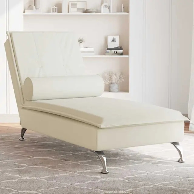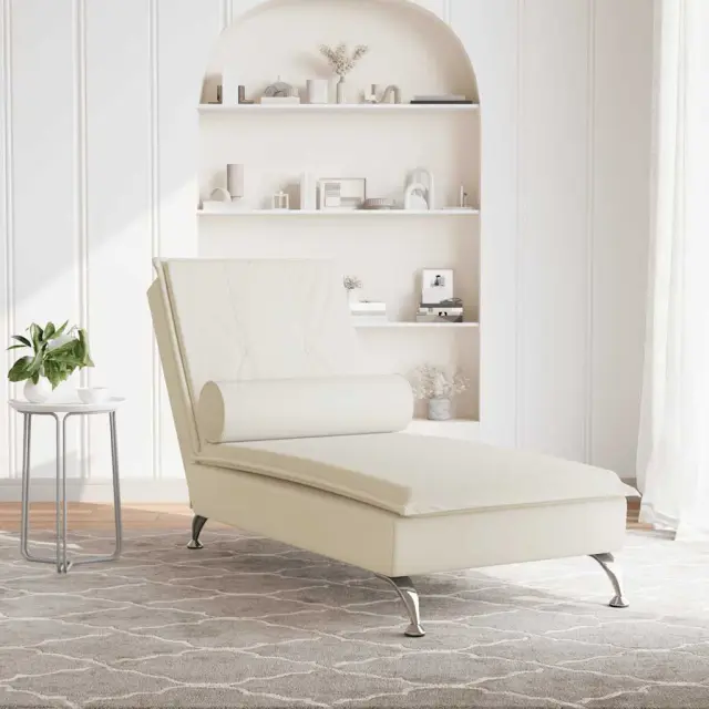 vidaXL Masaži počivalnik z vzglavnikom krem žamet
