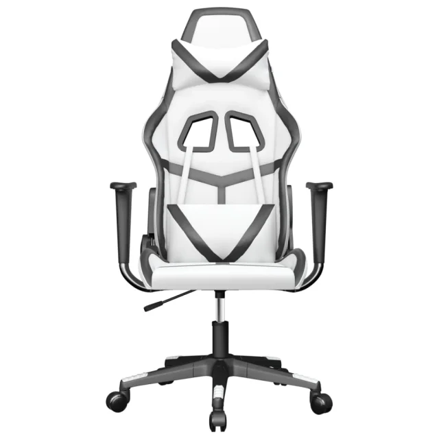 vidaXL Masažni gaming stol belo in črno umetno usnje