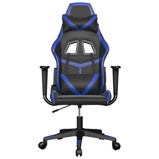 vidaXL Masažni gaming stol črno in modra umetno usnje