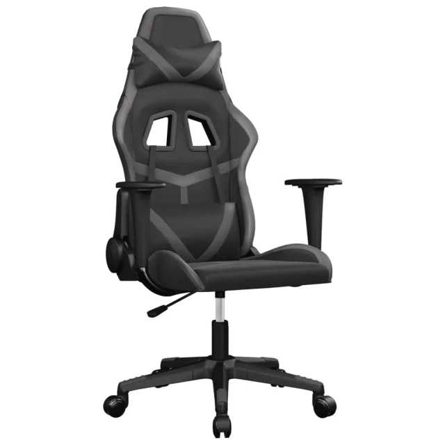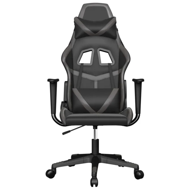 vidaXL Masažni gaming stol črno in siva umetno usnje