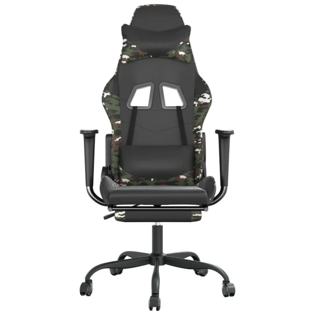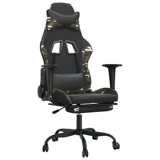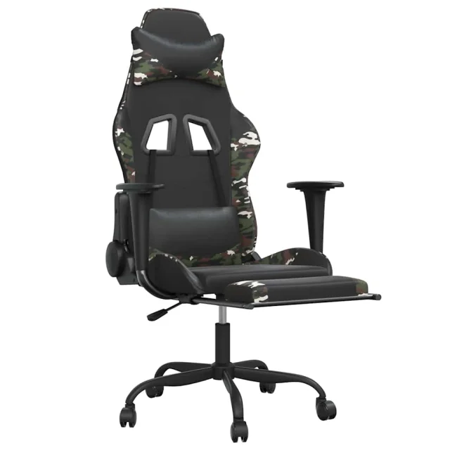 vidaXL Masažni gaming stol z oporo za noge črn in kamuflažen um. usnje