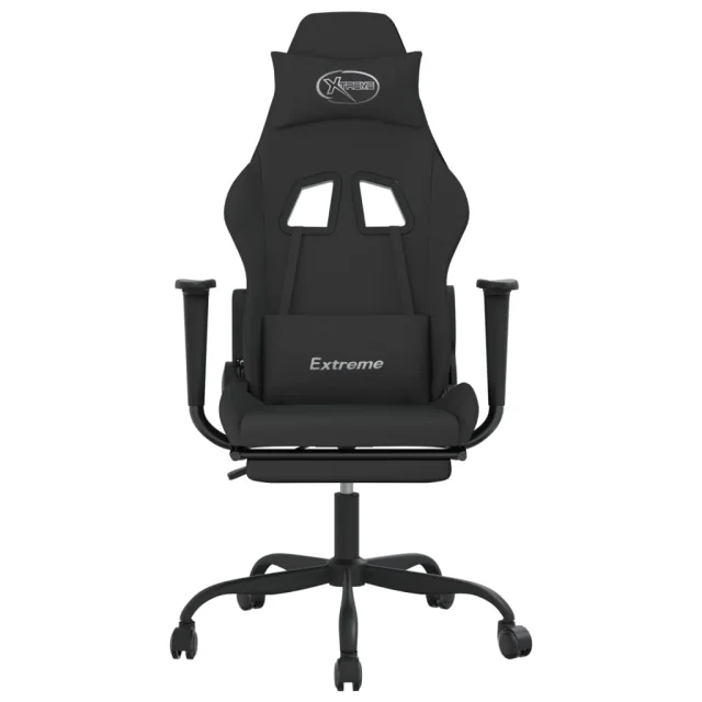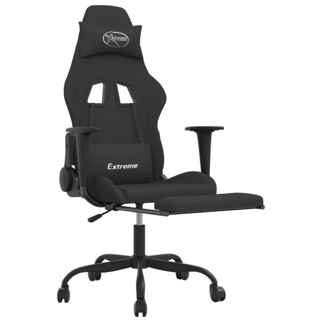 vidaXL Masažni gaming stol z oporo za noge črno blago