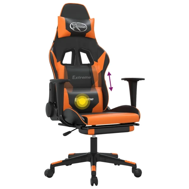 vidaXL Masažni gaming stol z oporo za noge črno in oranžno um. usnje