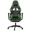 vidaXL Masažni gaming stol z oporo za noge črno in zeleno um. usnje
