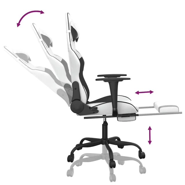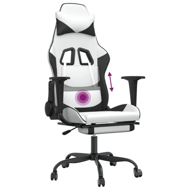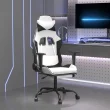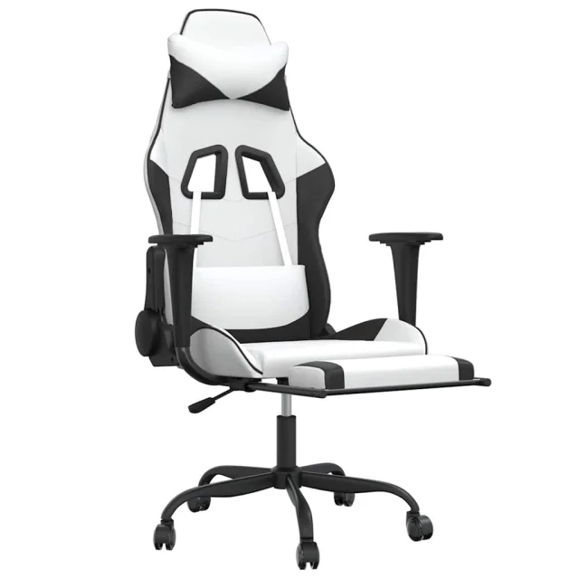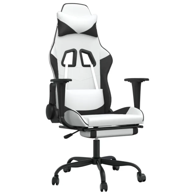 vidaXL Masažni igralni stol z oporo za noge Bela in črno umetno usnje