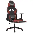 vidaXL Masažni igralni stol z oporo za noge črn in vin. rdeč um. usnje