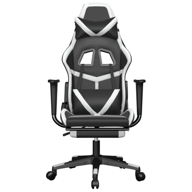 vidaXL Masažni igralni stol z oporo za noge črno in Bela umetno usnje