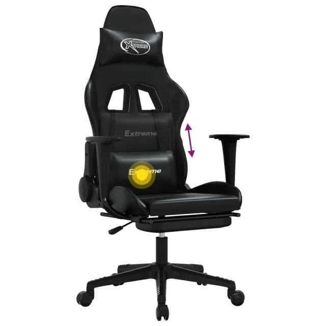 vidaXL Masažni igralni stol z oporo za noge črno umetno usnje