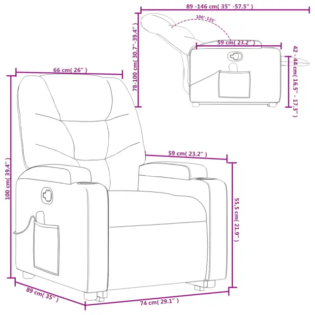 vidaXL Masažni naslanjač s funkcijo vstajanja rjavo blago