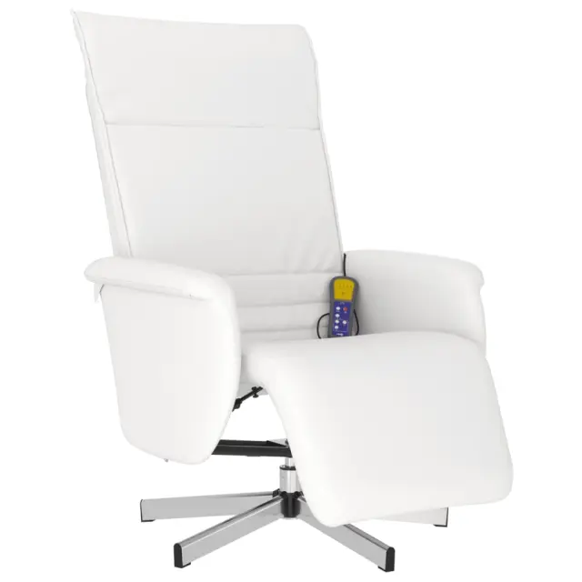 vidaXL Masažni naslanjač z naslonom za noge belo umetno usnje