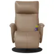 Namestite se in uživajte na tem izjemno udobnem masažnem naslanjaču! Funkcija vibriranja: 6 masažnih točk vam omogoča, da izkusite bolje usmerjeno masažo. Poleg tega vam priloženi ročni upravljalnik omogoča izbiro različnih programov masaže. Masažna funkcija se napaja prek priključka USB, ki zahteva certificiran 5V vir napajanja USB (ni priložen).Nastavljivo naslonjalo za hrbet in podnožje: Ta masažni stol je posebej zasnovan s funkcijo nagibanja, tako da lahko naslonjalo za hrbet in naslon za noge prilagodite svojemu udobju. Naslonjalo je mogoče nagniti od 105 do 125 stopinj.360-stopinjsko vrtenje: Masažni naslanjač se lahko prosto obrača za 360 stopinj, kar mu omogoča dodatno prilagodljivost.Udobno sedenje: Sedež, naslonjalo za hrbet in široki nasloni za roke so oblečeni v umetno usnje ter zagotavljajo prijeten in topel občutek, da se med sedenjem počutite prijetno. Umetno usnje je zelo trpežen material. Je odporno na madeže, zato ga lahko preprosto očistite z vlažno krpo. Gladka površina mu prav tako daje razkošen videz in lepoto pravega usnja.Trden in stabilen okvir: Okvir iz vezanega lesa in kovine zagotavlja trdno strukturo in stabilnost. Ta masažni naslanjač je udoben in trpežen. Dobro je vedeti:Zaradi varčevanja s prostorom so nekateri deli ali blazine zapakirani v notranjost pohištva - preverite, ali so v predalih z zadrgo ali pod prevleko sedeža skriti kakšni sestavni deli.Barva: KapučinoMaterial: Umetno usnje (75 % polivinilklorid, 20 % poliester, 5 % bombaž), vezan les, kovinaMaterial polnila: PenaDimenzije v sedečem položaju: 71 x 90 x 105 cm (Š x G x V)Dimenzije v ležečem položaju: 71 x 130,5 x 95,5 cm (Š x G x V)Širina sedeža: 51 cmGlobina sedeža: 65 cmVišina naslonjala za roke, od tal: 57 cmPremer okroglega podstavka: 70 cmTip masaže: 6 točkovna vibracijska masažaVhodna napetost: DC 5VVhodni tok: 2AMaksimalna nosilnost: 110 kgPotrebno sestavljanje: Da 356556
