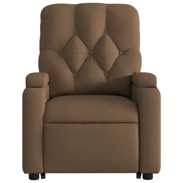 Namestite se in uživajte na tem izjemno udobnem masažnem naslanjaču s funkcijo vstajanja! Funkcija power lift: Ta naslanjač za starostnike je opremljen z električnim motorjem za lažje vstajanje. Zahvaljujoč funkciji, ki potisne celoten stol navzgor, lahko preprosto vstanete, ne da bi obremenjevali hrbet in kolena s preprostim pritiskom na gumb.Funkcija ročnega nagiba: Ta stol z nagibom ima ročaj na desni strani. S preprostim potegom ročaja lahko ročno nastavite naslon za noge in naslonjalo za hrbet v poljuben položaj glede na vaše udobje. Ta funkcija omogoča največji nagib 135 stopinj. Poleg tega lahko naslonjalo hitro vrnete na prvotno mesto z enostavnim potegom ročaja.Funkcija vibriranja: 6 masažnih točk vam omogoča, da izkusite bolje usmerjeno masažo. Poleg tega vam priloženi ročni upravljalnik omogoča izbiro različnih programov masaže. Masažna funkcija se napaja prek priključka USB, ki zahteva certificiran 5V vir napajanja USB (ni priložen).Udobno sedenje: Sedež, naslonjalo za hrbet in široki nasloni za roke, prevlečeni s tkanino, zagotavljajo prijeten in topel občutek, zato se med sedenjem počutite prijetno. Preprosta in čista tkanina je tudi zračna in trpežna.Priročna držala za skodelice in stranski žep: Ta naslanjač ima dve priročni držali za skodelice za vašo pijačo in stranski žep, v katerem boste imeli svoje potrebščine na dosegu roke.Trden in stabilen okvir: Okvir iz lesa in kovine zagotavlja trdno strukturo in stabilnost. Ta naslanjač je udoben in trpežen.Barva: RjavaMaterial: Blago (100 % poliester), kovina, vezan lesMaterial polnila: Pena, PP vlaknaDimenzije v sedečem položaju: 74 x 86,5 x 93,5 cm (Š x G x V)Dimenzije v ležečem položaju: 74 x 142 x 75 cm (Š x G x V)Širina sedeža: 50 cmGlobina sedeža: 58 cmVišina sedeža, merjena od tal: 42-44 cmVišina naslonjala za roke od tal: 55,5 cmMožnosti: Masaža brez ogrevanjaTip masaže: 6 točkovna vibracijska masažaVhodna napetost: DC 5VVhodni tok: 2AZ električnim motorjem za funkcijo samodejnega vstajanjaVhodna moč električnega motorja: DC 24 V, 1,5 AIzhodna moč električnega motorja: 100-240 V~, 50-60 HzMaksimalna nosilnost: 110 kgPotrebno sestavljanje: Da 3204726