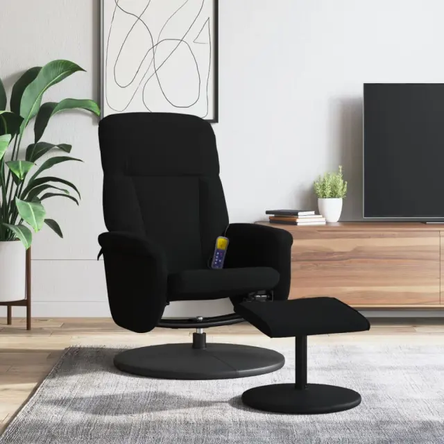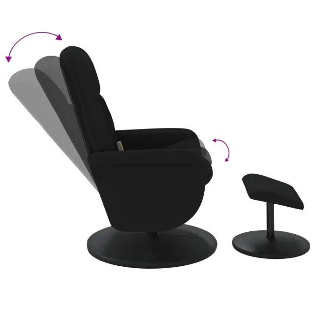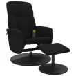 vidaXL Masažni naslanjač s oporo za noge črn žamet