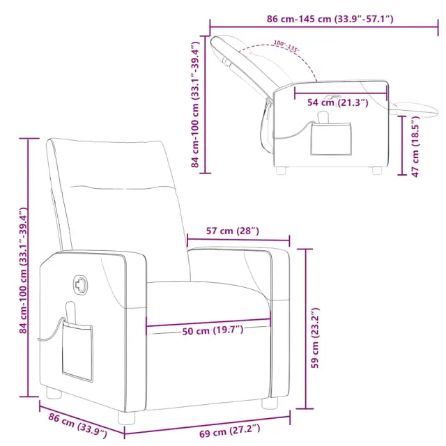 • Priročen stranski žep: Ta naslanjač ima stranski žep za daljinski upravljalnik, v katerem boste imeli svoje potrebščine na dosegu roke.
