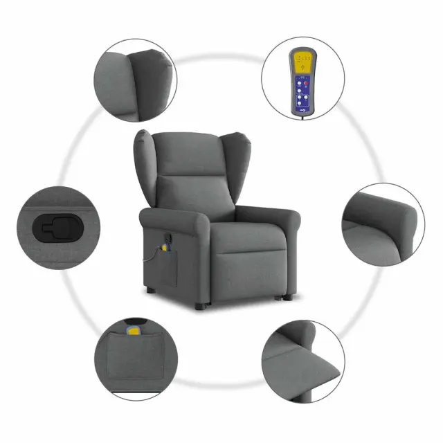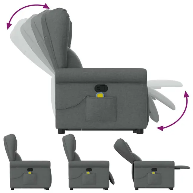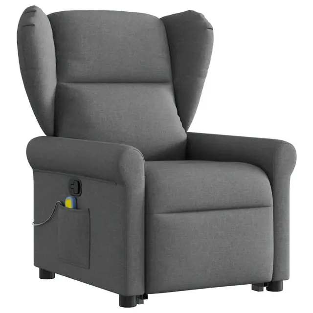 vidaXL Masažni naslanjač s funkcijo vstajanja temno sivo blago