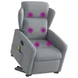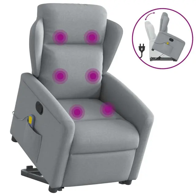 vidaXL Masažni naslanjač s funkcijo vstajanja svetlo sivo blago