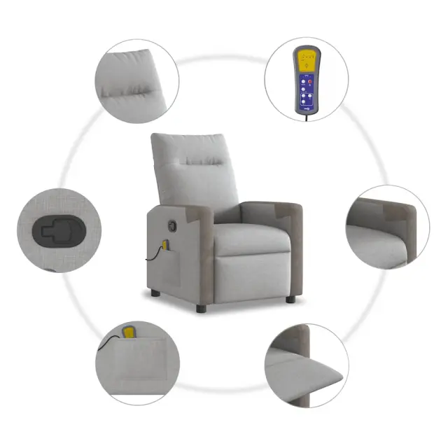 vidaXL Masažni naslanjač sivo blago