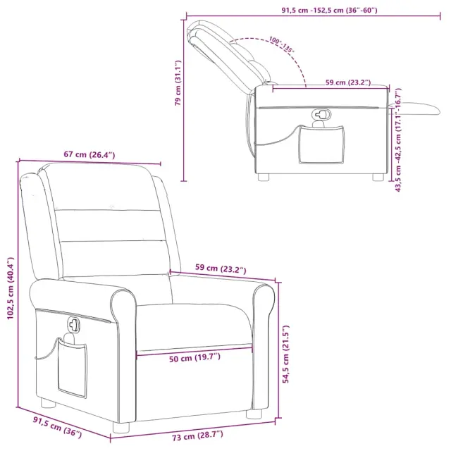 • Priročen stranski žep: Ta naslanjač ima stranski žep za daljinski upravljalnik, v katerem boste imeli svoje potrebščine na dosegu roke.
