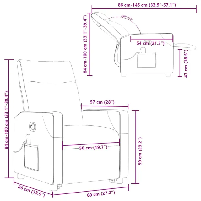 • Dimenzije za sedenje: 69 x 86 x 100 cm (širina x globina x višina)