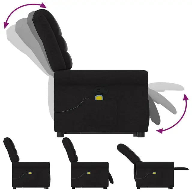 vidaXL Masažni naslanjač s funkcijo vstajanja črno blago