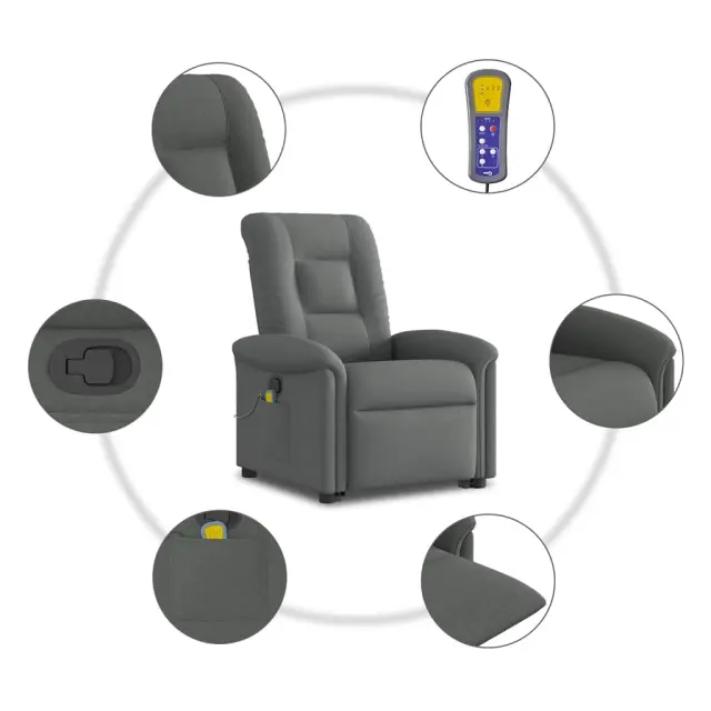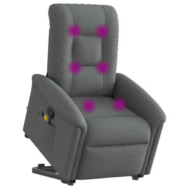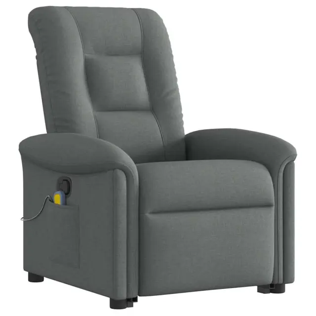 vidaXL Masažni naslanjač s funkcijo vstajanja temno sivo blago