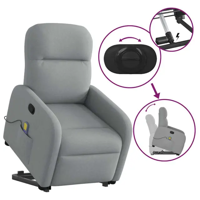 vidaXL Masažni naslanjač s funkcijo vstajanja svetlo sivo blago