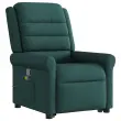 vidaXL Masažni naslanjač s funkcijo vstajanja temno zeleno blago