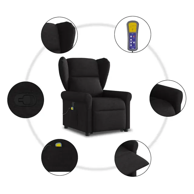 vidaXL Masažni naslanjač s funkcijo vstajanja črno blago