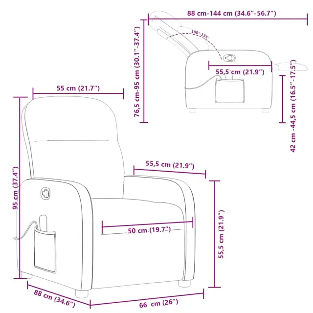 • Priročen stranski žep: Ta naslanjač ima stranski žep za daljinski upravljalnik, v katerem boste imeli svoje potrebščine na dosegu roke.