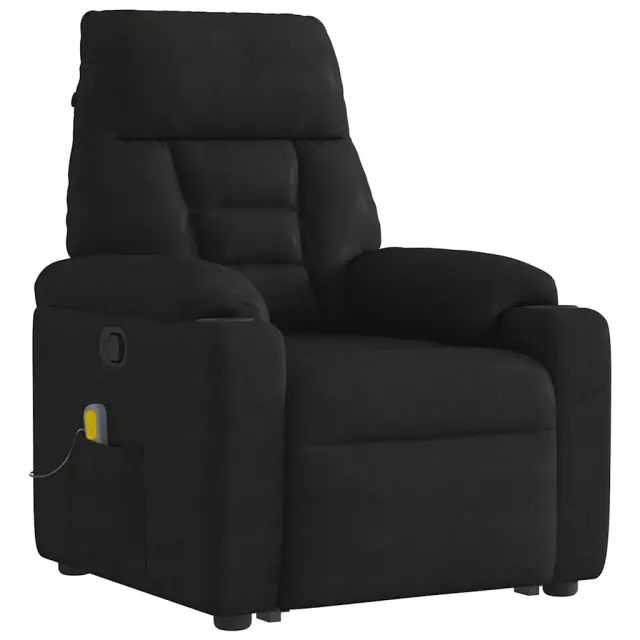 vidaXL Masažni naslanjač s funkcijo vstajanja črno blago mikrovlakna
