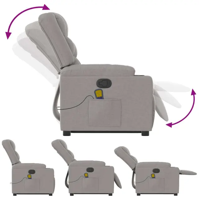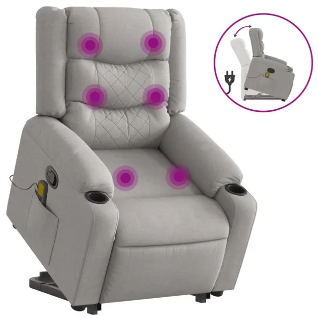 vidaXL Masažni naslanjač s funkcijo vstajanja sivo blago