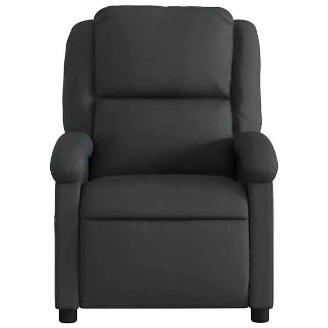 vidaXL Masažni naslanjač črno pravo usnje