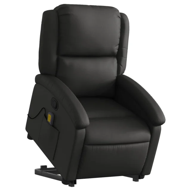 vidaXL Masažni naslanjač s funkcijo vstajanja črno pravo usnje