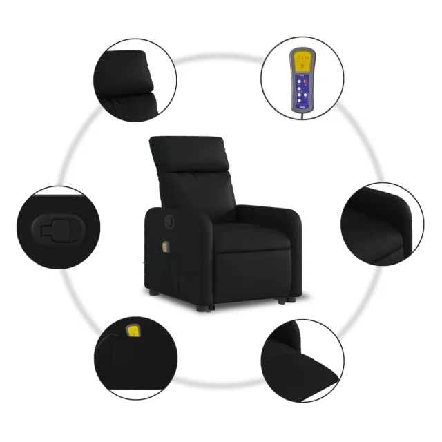 vidaXL Masažni naslanjač s funkcijo vstajanja črno umetno usnje