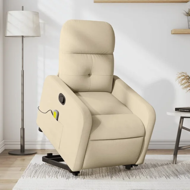 vidaXL Masažni naslanjač s funkcijo vstajanja krem blago