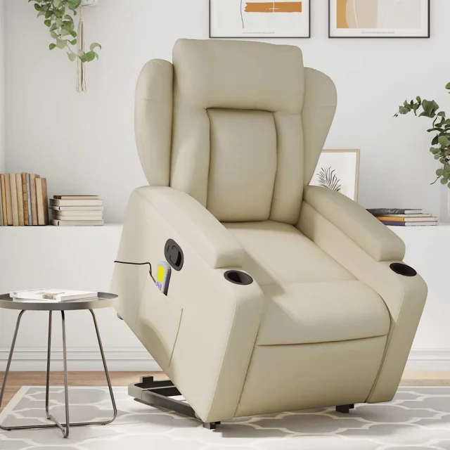 vidaXL Masažni naslanjač s funkcijo vstajanja krem umetno usnje