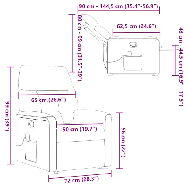 • Dimenzije v sedečem položaju: 72 x 90 x 99 cm (Š x G x V)