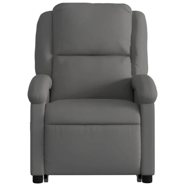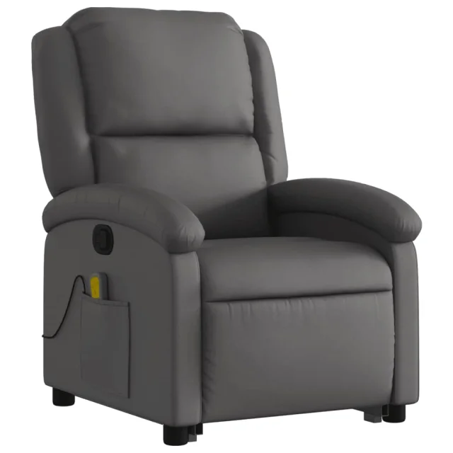 vidaXL Masažni naslanjač s funkcijo vstajanja sivo pravo usnje